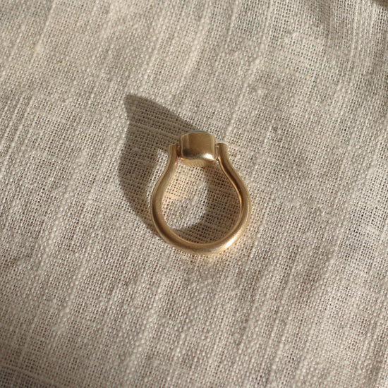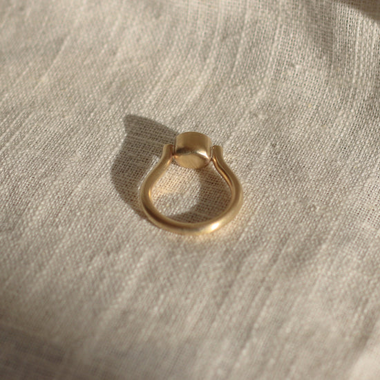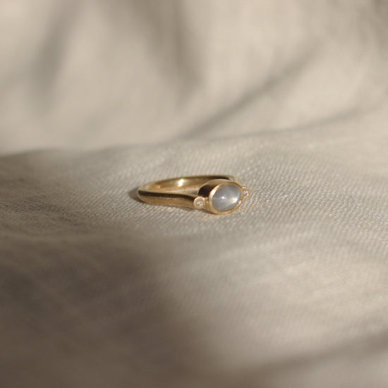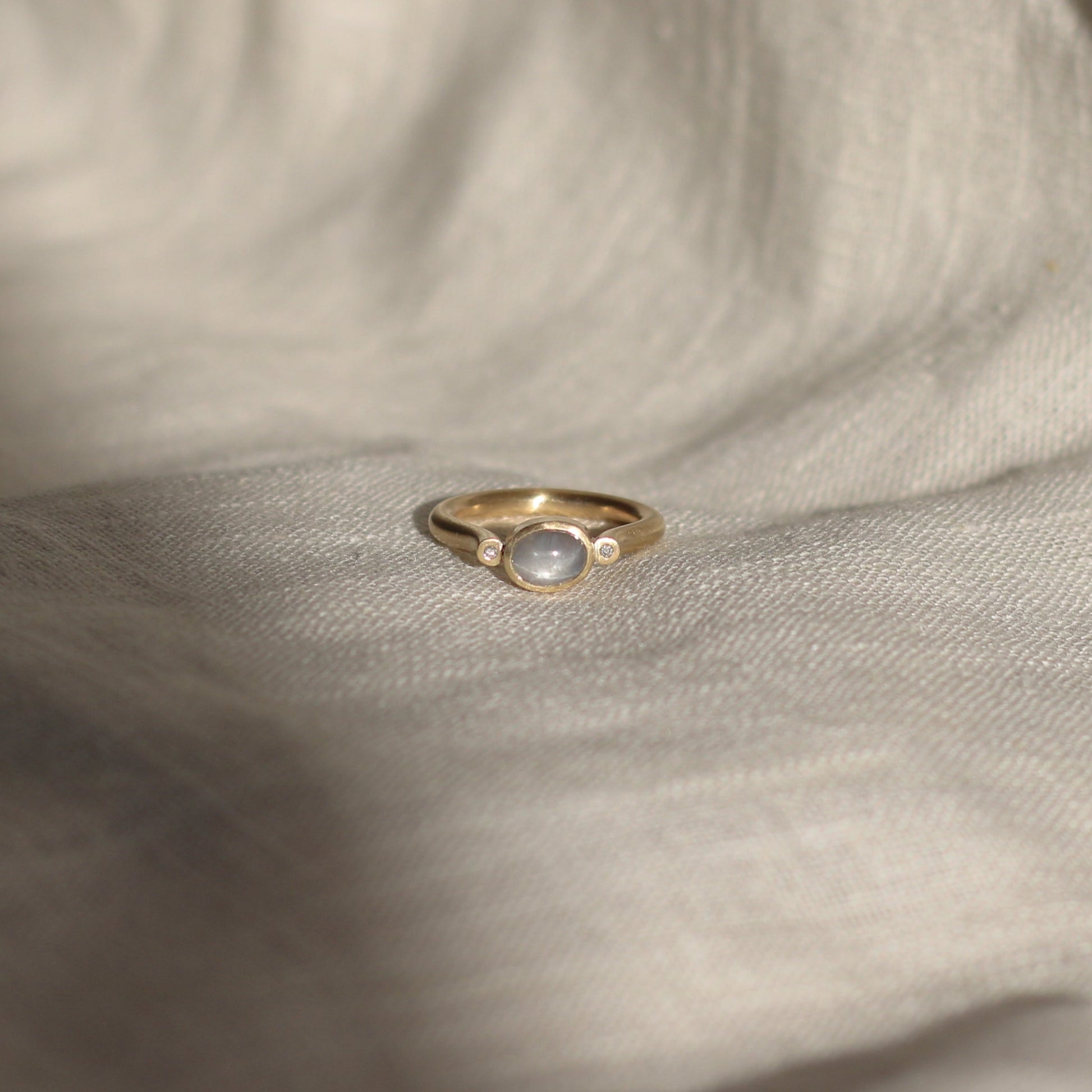 One of a Kind House Martin Ring. Silky grey star sapphire bezel set with diamond accent band in solid 9ct yellow gold with a brushed satin finish.